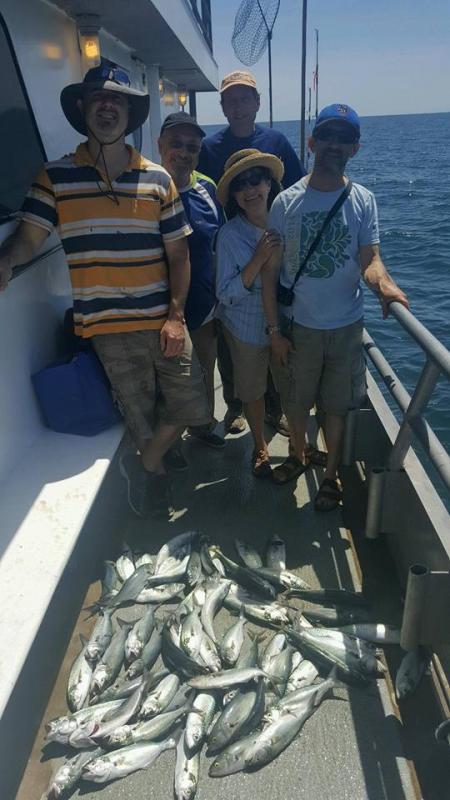 We had very good fishing today. Anglers caught plenty of.bluefish and mackerel. We were chumming and caught the fish on either jigs or bait. Most of the bluefish were caught on jigs. It looks good for the rest of the week. The big Jamaica is sailing at 7:30 a.m. every day this week for Bluefish. The big Jamaica will sail at night for Blue Fish on Friday and Saturday nights at 7:30 p.m. Afternoon Family fun trips for fluke and sea bass will sail Sunday through Wednesday from 4:30 p.m. till 8:30. There is plenty of space available for the Sunday 4:30 p.m. trip. Call the office for reservations. Thursday nights there will be a fishing and fireworks trip leaving 5 p.m. returning by 10 p.m. also on July 4th. For further information call 732-528-5014