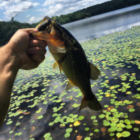 I always make it a point to chat up the anglers to see how they are doing. Most don't venture far beyond the dam and I rarely see any catches beyond the occasional sunfish and perch. There are some very "bassy" looking areas on the west side of the lake if you are willing to walk a little after reaching it. The hike isn't hard. About 20 minutes of mostly gentle uphill from the lower parking lot. Longer from the upper parking area. I've often considered carrying my canoe up there. I can also drive tothe lake because of my trail maintenance position, but I hesitate to abuse that right for the purpose of fishing. |