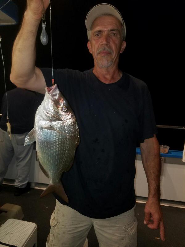 Good Porgies again last night. Mixed fish, everybody caught fish. Like always some did very well and others had enough for dinner. We also had a good shot of Blues to end the night. Sailing tonight at 6:30pm.