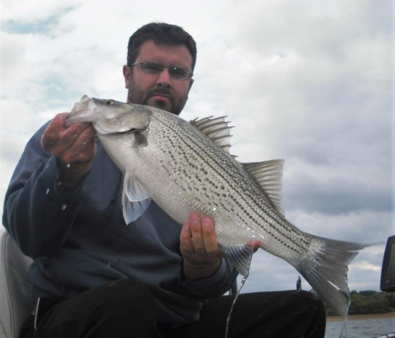 Name:	hybrid striper on tandem, first one on mini raunchy rainbow fly.jpg