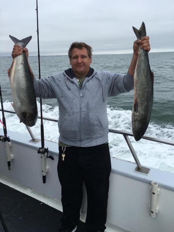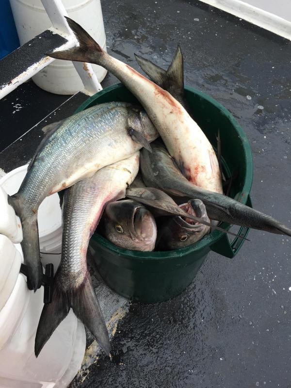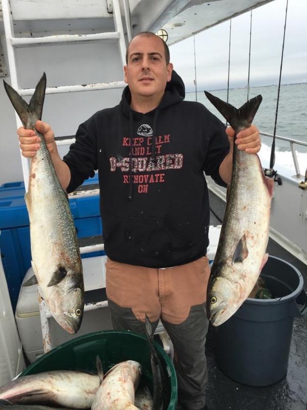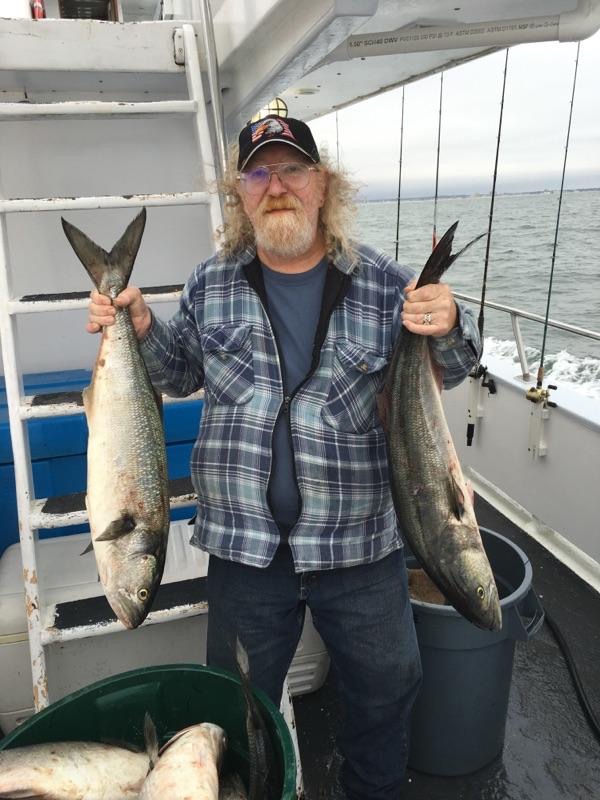 Great job by capt Jim heading east despite the slight chop. Had the whole place to ourselves for a long time. Nonstop action on the biggest kind of blues. What a day!