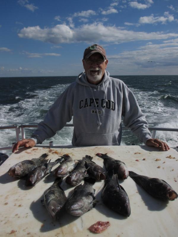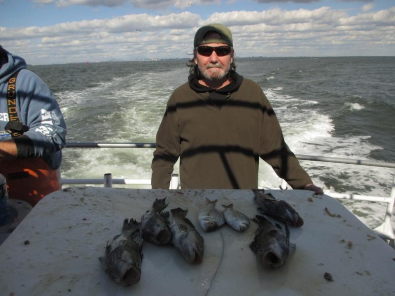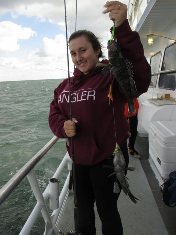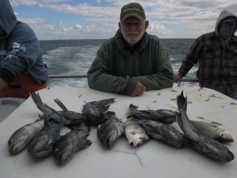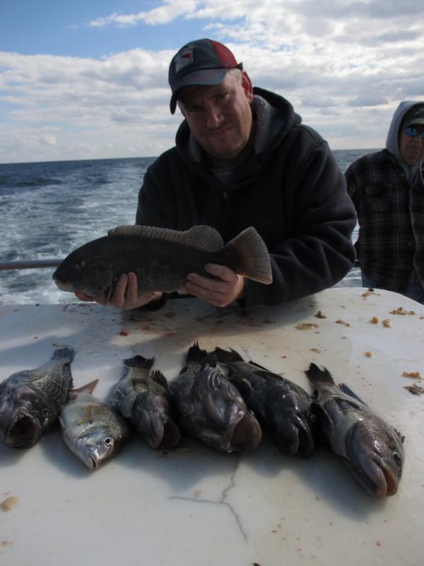 It was drop and reel for most of the day with double and triple headers. Most went back with a 13 inch size limit but we had shots of keepers come in. Steve Merr from Matawhan had the pool with a tog. Windy all day but not rough with a NW wind,