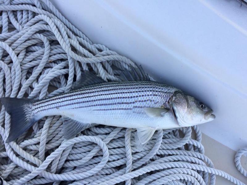 Boat traffic killed the bite - so we went up on the troll and picked a few bass (1 more keeper) and a couple shorts as well as jumbo bluefish on rigs - but that was short lived.