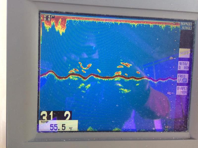 Started out in the dark found bait right outside our inlet but found no fish in the pods. We then took a ride and found peanuts getting destroyed by schoolie sized bass right in the surf --- the guys went to work right away with the shads and had their limit of bonus fish in under 15 minutes. Big swell in tight made it tough but I was able to keep the bow pointed east and the stern right in on the beach where the fish were. We were also able to pull a few legit keepers out of the peanuts also.