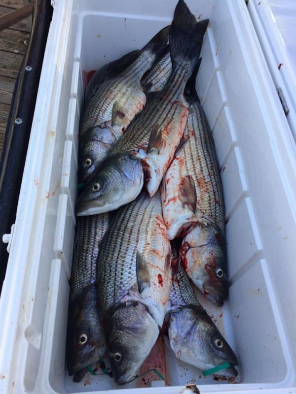 Real nice day, finished with 9 bass in the box (the limit of bonus tag slot fish + 3 keepers to 30") and a few blues. Thanks for coming out guys!