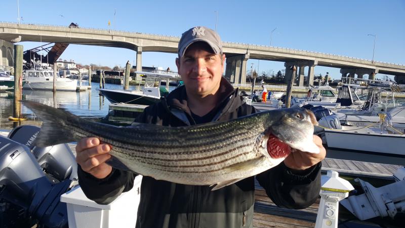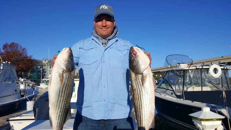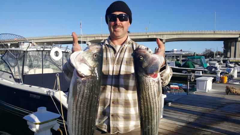 Great day today. Had Spring like weather. Hit the Stripers pretty good with 8 keepers then tried our luck with the tog. Had a few keepers and some throw backs but not the same success as with the Stripers. Great bunch of guys. Thanks for fishing with us!!!
