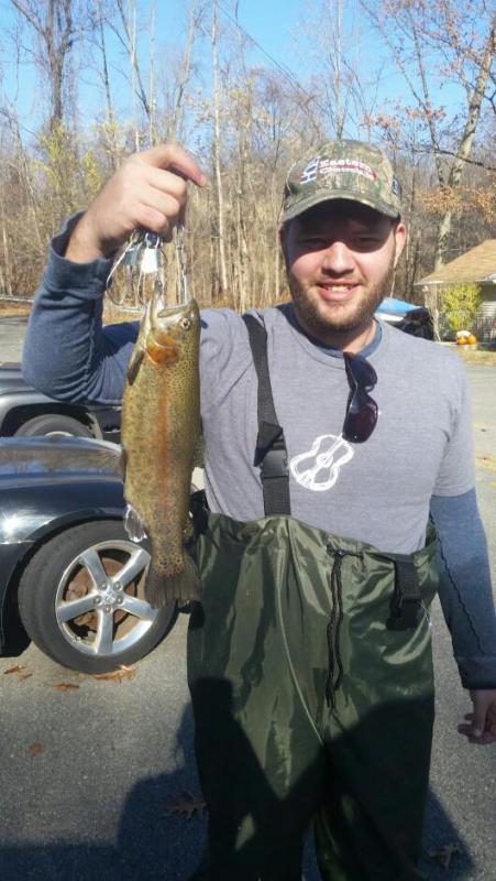 Convinced YoungDumbAndFullOfFish to come out with me on the ramapo. Been slow but steady for trout. Bite was slow, so we tried a not so secret spot and baited one up. Tom reeled in a nice one,Grabbed him outta the water....out came a thick stream. He musta been all fired up. Bc he did again. And again. And once right on my car for good measure. I've seen the videos with female trout and salmonids, and in person with trout and some other fish. But a male? At least he died happy