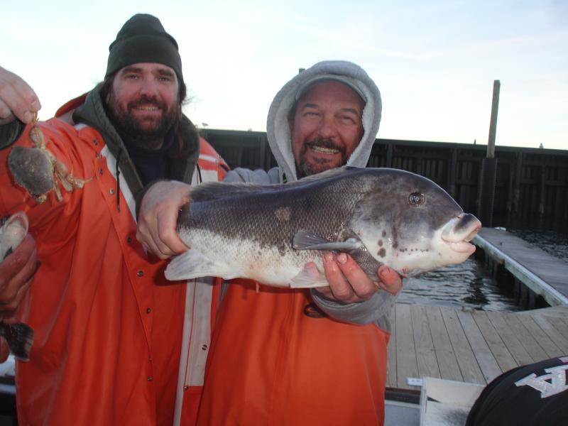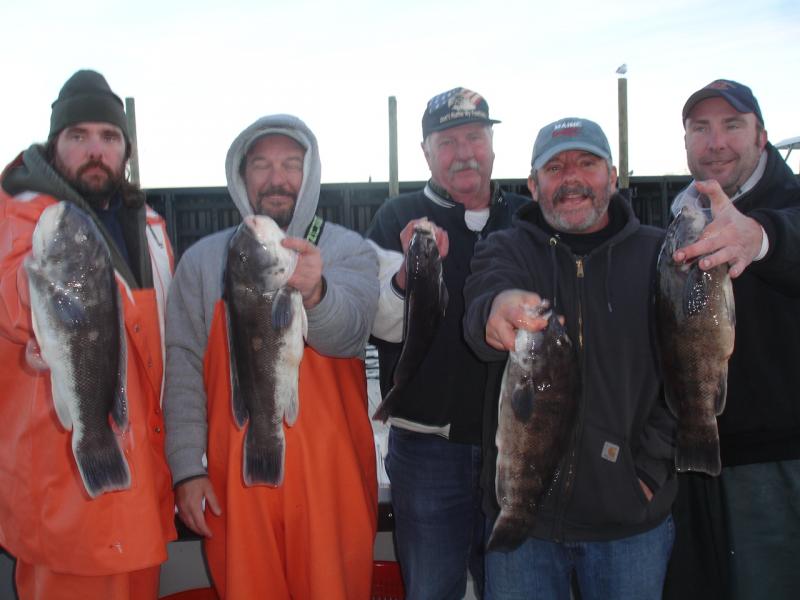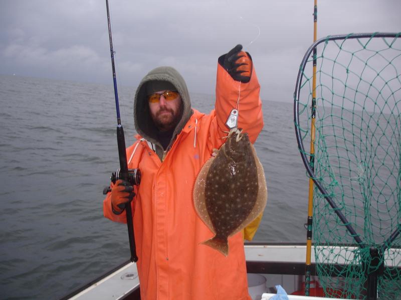 This A.M we ran an open boat Tog trip and were greeted to a nice Southerley roll.We ran down South to where we left them chewing yesterday and it took almost twenty minutes to get our first fish. It was a slow dismal pick of keepers and way to many shorts. We were not happy with that so made a move and boy that was it for the day, it just got worse and only managed a few more keepers for the cooler. Andy was HH with 8 keepers and down from there. The first fish that came up today was a fluke.
