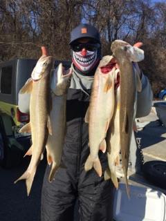 We opted to hit the other lake since it was fairly close and we were determined to catch some fish, so later start then we would have liked but it may have paid off for us in the log run. We fished for quite sometime before we finally put one in the boat but glad we broke the skunk ! Today seemed like the fish got active after lunch which by then most people would have left cause of the cold and wind but we stayed having the confidence that we would catch more and sure enough we did! Ended the day with one shy of a limit as we picked another one and then finished the day on a three banger of which the last fish had to be hand lined in since the lines tangled! What the hell we were kinda ice fishin anyway! Had a great time and learned a lot but never could figure out why my partner had this big grin on his face all day!!!!!!![]() ![]() ![]() ![]() ![]()