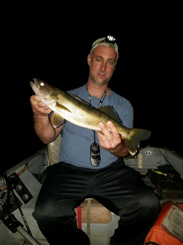 Finally found some time to escape the other evening to see what was lurking in the spring hunting grounds. It took a little work but we managed 3 waldos for our efforts. 2 males around 18"ish and one plump 22"ish female that hit our homemade Woolly Eddie Bug. Seems like these fish maybe coming off their spawn and should be moving to their summer roosts any day now with water temps way higher for mid April compared to last year.