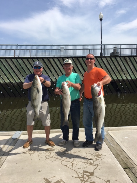 Had Dad, long time friend Mike and Joe. First Striper within 4 min of lines in water. Dead after that for hours. Made a move, fish on and pulled the hook. After a lot of time decided to head back but try one more spot. Good idea! Bang got our limit.