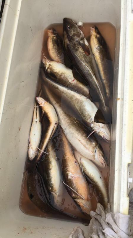 Wednesday: Ran out with my father and my buddy manny. Got set up to begin the day in 85 feet. Had a few ling right off the bat but then the seabass woke up and completely took over. Sucks that the seasons closed as we had some big ones but at least i know where to run for the opener. Hopped from piece to piece but couldnt escape the seabass. Ran in shallow to do some catch and release togging and it was pretty good but the dogfish let us know they were there. Hit one more spot on the way home in 80 feet and had a nice pick of ling and short cod until the coast guard boarded us for a safety check and knocked the boat awkwardly off the wreck. Was a good day of catching, with 40 tog+ and 100 seabass, just not a good day of keeping.