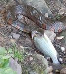 A northern water snake took over my Carnegie Lake fishing spot Wednesday. Saw it catch and swallow a white perch. It was inches from my boots a few times. The inside of its mouth is white and the tongue is black. I didn't get bitten yet.