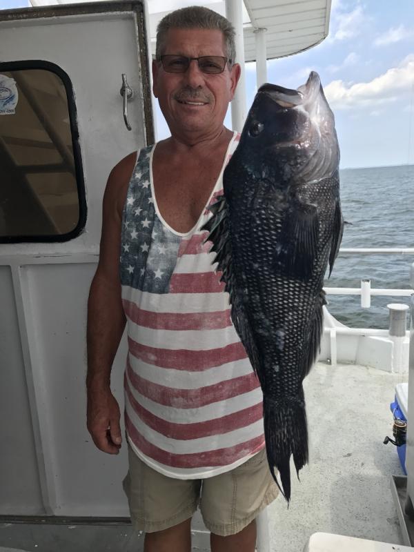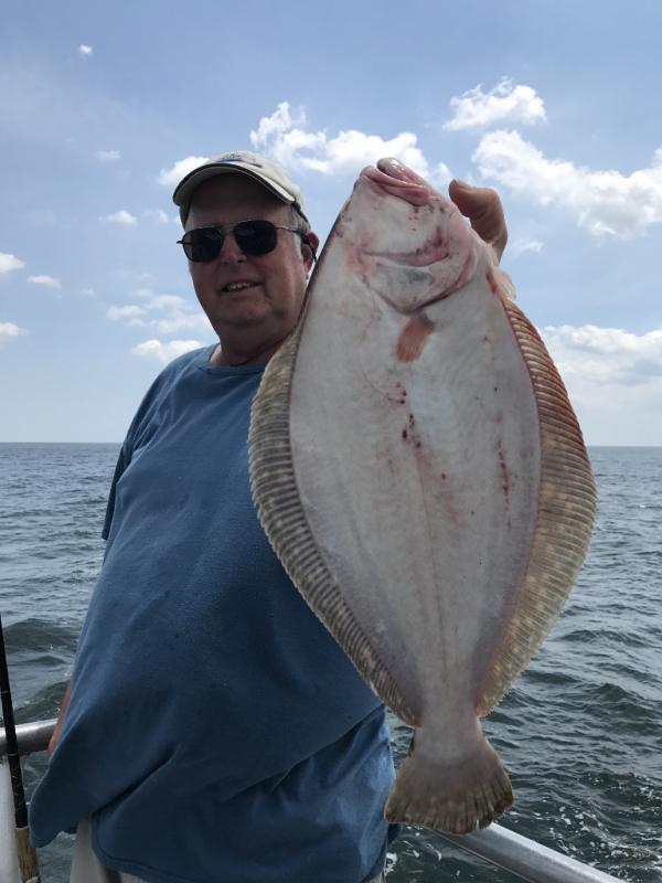 Again not good conditions but we had some big fish today. Henry Fengya from Wayne had the pool with a 7# 5oz fluke. Charlie had a couple of brutes that boke his leader. These fish were in the same areathat our big pool leader was caught. Some really jumbo sea bass with Wendy having a 21 inch beast. Tomorrow looks good.