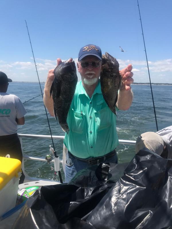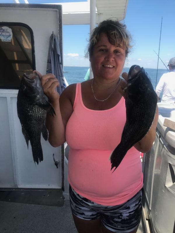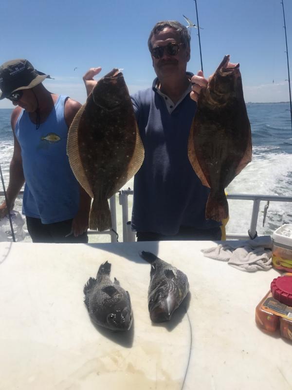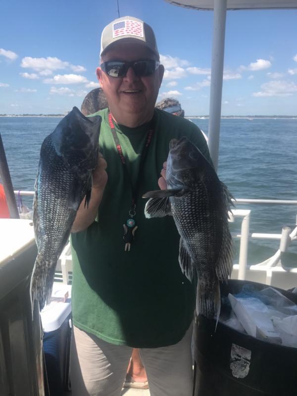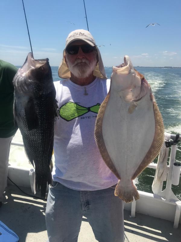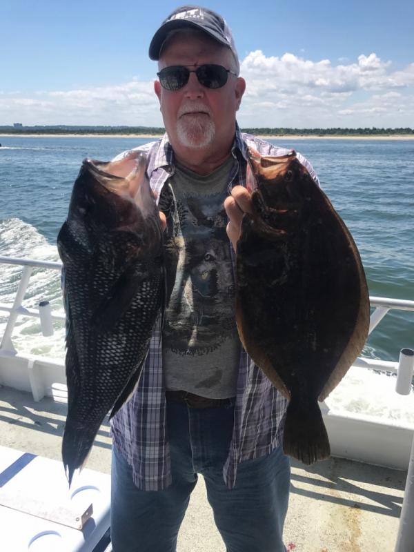 Beautiful day on the water with much better fishing. Good action all day with some jumbo sea bass and plenty of fluke both shorts and keepers. Chris Arthur from Bridgeton had the fluke pool today. Not as sticky as yesterday but not sandy. You can see by the size of the bass we are fishing some virgin hangs.