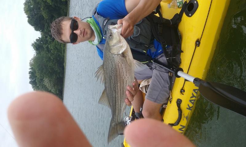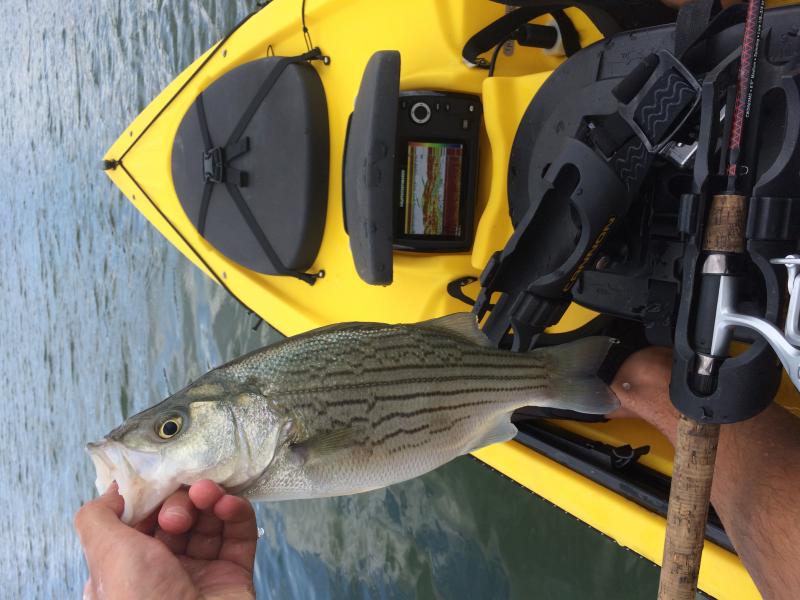 Fished two days this past week targeting the striped ones. Action was decent the first day. I slow trolled shiners and picked up two smallies, largemouth and two hybrids missing a couple bites. Doubled up on both rods at one moment but one came unbuttoned. On the second trip using herring I got a nice hybrid in the first couple of minutes but after the one had many missed hits. The fish would hit the bait, pull it momentarily and spit it out. Managed one smaller one near the end of the day.