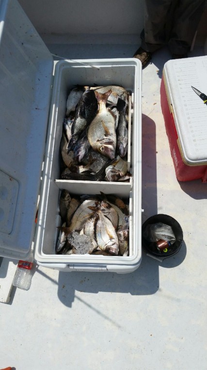 We had Wayne, Earl, Ash, John, and John out for some drop & reel Porgy action yesterday. We then moved out a little and picked some jumbos along with Seabass. Porgy fishing with light tackle is some of the most fun you can have while standing!