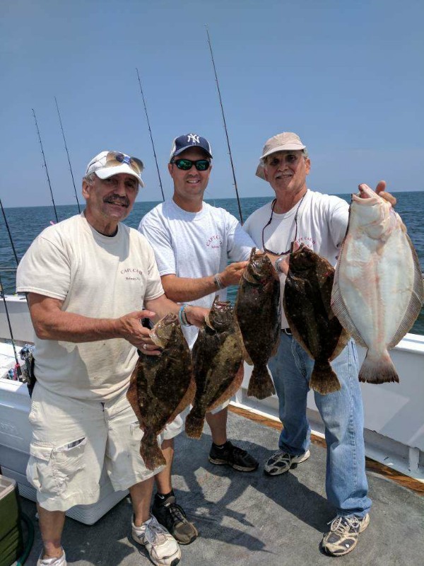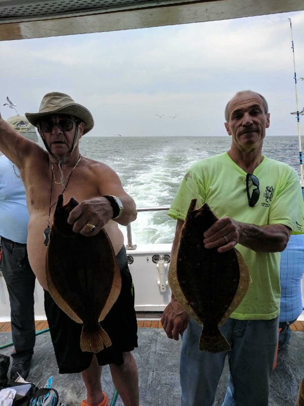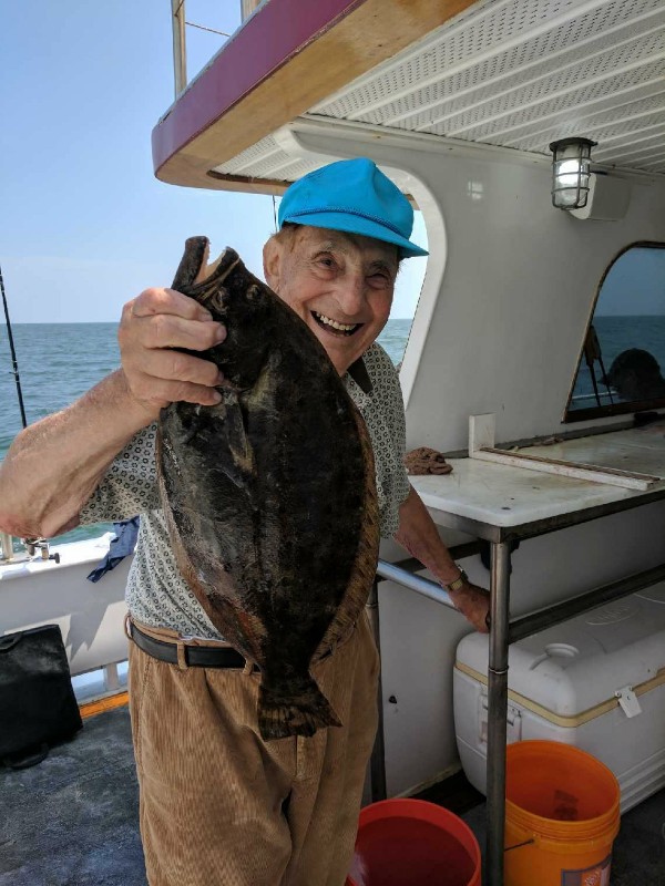 Great fishing today aboard the Cal. We caught fish everywhere we went today! The bucktsils dressed with gulp were the best while the bait draggers held there own too. We had quite a few limits today with some guys playing catch and release for almost half the day! Billy (91yearsyoung) took the pool from the bucktailers with a nice 5lb. 1oz. Fluke. Great job Billy! We sail everyday from 7:30AM - 2:30PM. The boats always lit up by 5 30 AM. Come on down and get some!
