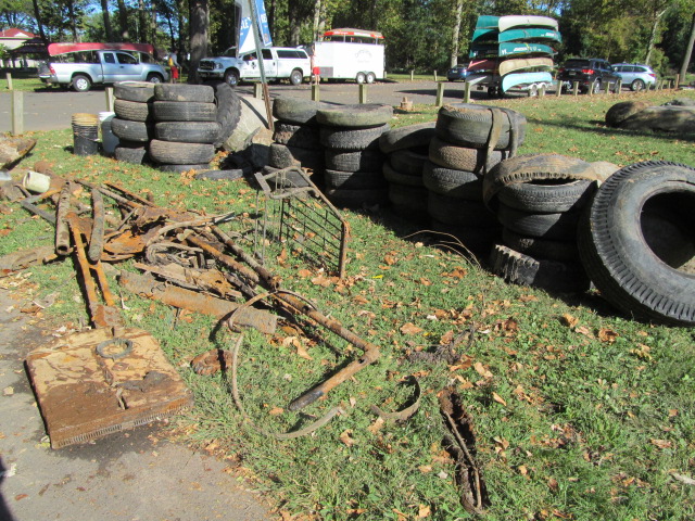 River team had a great eye for some junk barely exposed and left nothing behind- even if it meant digging it out of the ground. There was some great commitment. Especially from the robotics team. Neat story: When we started I came across a mattress and convinced others to haul it out. Mike got a knife while George and I held it over the canoe and cut holes in it to let the water drain. Something was off however, he was stabbing the center of the mattress while on our end we still felt movement. I asked George "Do you feel that ?" and suggest that there's something probably inside. Mike cut a larger hole in the fabric, flipped it, and a lil catfish comes SWIMMING OUT. After getting the whole thing on the canoe, Jens decided to cut the fabric on it more and it revealed another cat, a sunnie, and an eel. We had a ~2 foot long eel in a canoe too but I forget what it came out of. |