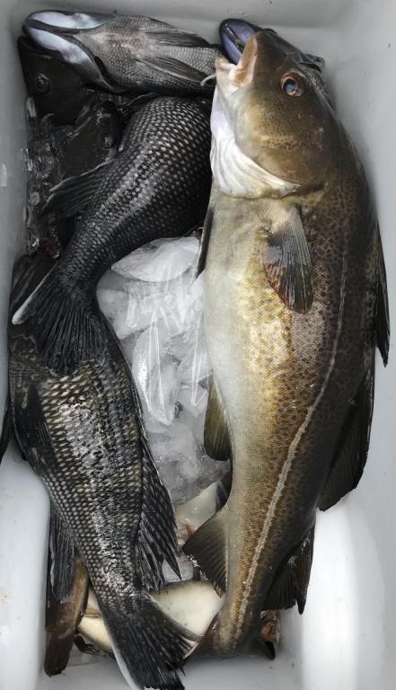 Today aboard the Down Deep Bull, we ran another 5:30 am open boat Seabass trip with a big crowd of great new and returning guys. The Seabass fishing remains outstanding with all the Ling you like and other assorted bottom dwellers to keep rods bent all day long. Coolers fill fast with everything the crews come for and many other keepers returned to swim another day. Take a day off and get in on one of the best spring seasons in years. Thanks everyone for sailing with us, and all others who continue to book their trips going forward at a rapid pace. Don’t miss the next open boat trips and fish in comfort like a gentleman and get right on em -