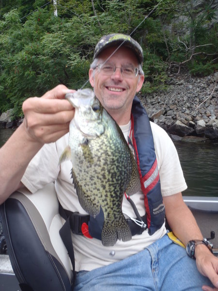 After some unsuccessful trolling and my wife claiming she was bad luck, I promised her we would catch some fish....hit deep rocky areas (15-30 ft.) for a mix of smallmouth, a big yellow perch,and 6 nice crappies. Capt. Dave