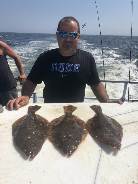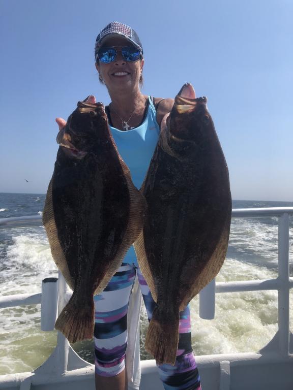 We had much better fluking today. Jim Custer had another instint dollar pool for the first keeper and Ray Slowdowski from Toms river had his seconf pool winning fluke this week. The jiggers had very good action with straight gulp and no bait. The bait fishermen only had a few. Wendy had the biggest today but not in the pool.
