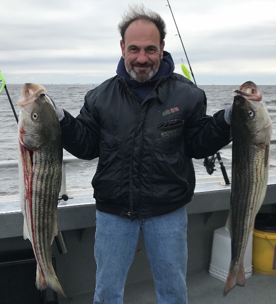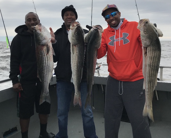 Today aboard the Down Deep Bull, we ran another 6am Raritan Bay Striped Bass trip with a big crowd of great new and returning guys. Excellent fishing with multiple hook ups all around the boat made for big smiles, sore arms and beautiful bags of fillets. Many others released to swim another day as the fish just keep coming. Thanks everyone for sailing with us and all others who continue to book their trips going forward at a rapid pace. Don’t miss the next open boat trips and fish in comfort like a gentleman and get right on em -
