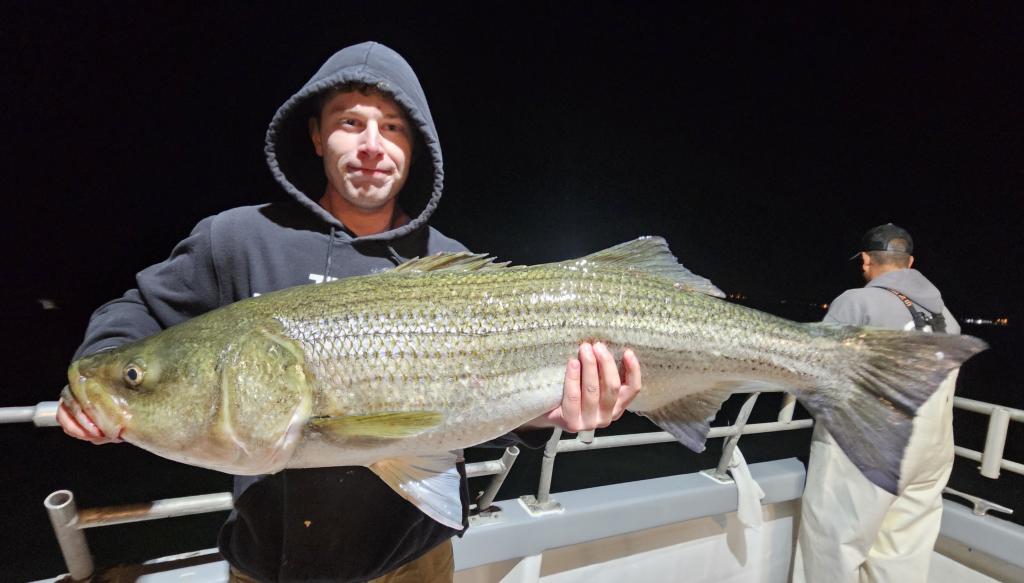 Woah, what a night! Non stop action all night long from start to finish. Just like clockwork, all of our local haunts are LOADED with fish!!!! We had bites on every drift in multiple areas tonight. Biggest fish measured just under 48" with the smallest being 43". Couldn't have asked for a better first night of the fall! Thanks to the guys that trusted us tonight and helped us make a report, not chase one! We sail EVERY NIGHT 6:30PM-11:30PM Come catch yours! Friday night looks good! 2 Simon Lake Dr Atlantic Highlands NJ Open boat, no reservations needed! Limited to 35 passengers, no overcrowding! Here's just a couple of the pictures from tonight, check some more out on our Facebook page! All trips can be booked at fishdarkhorse.com or call/text 973-440-0335