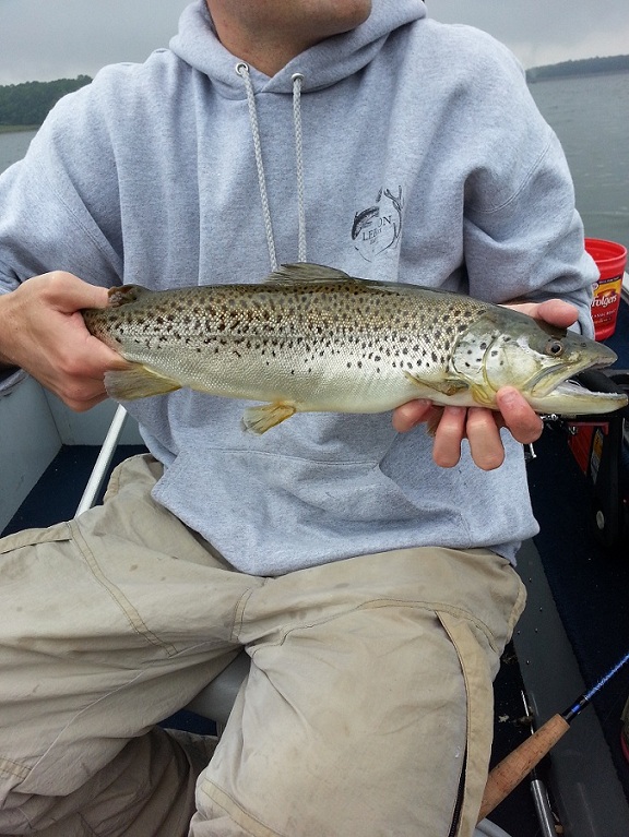 Weather was just good enough to fish. Had my newbie buddy on the boat today slow trolling. First fish was the best. Fought him for a good 5 mins, drag screaming runs, 2 big jumps, then bulldogged me to the bottom. Got him close to the boat and it was a solid 30'brown super silvery. Newby went for the net way to early and doinked the line..heartbreaking. Waited out a thunderstorm for 30 mins and game on. First pic is 20" or so laker (hes lunch) pick 2 is 20"brown, pick 3- 24" about 4 lbs brown, Pic 4- 22" brown, pic-5 biggest landed 25"-5lb brown all released. Pic 3 and 4 had tags but we let them go fast didnt get the info. Had fish biting the whole time. You can see who were fishing for in the last pic lol. Gotta love the rain!!