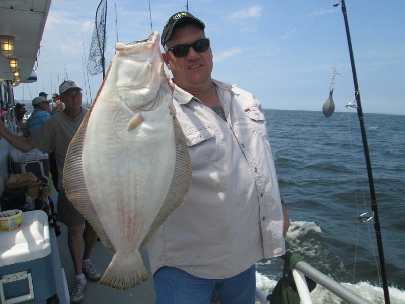 We started out with quality fluke right away with most fish 3 to 4 pounds. It lasted till the current picked up and we made a move to Ambrose. Once again we had good fishing till the current killed us. Chip Pfeiffer from Stewartsville made it two pool in a row on big baits, Check the nice size of our fluke today,
