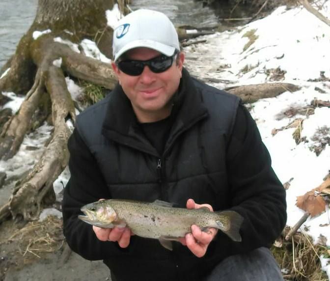 Hit the river w/ Jim trying for some 'bows bright and early....Weather was a warm 35 degrees for this time of year, and the water was a bit high which was good......fish were very cooperative as between the both of us we caught @ 40 all on artificials.....Never thought I'd like fishing in the winter as much as I have been this year...As far as me 'lipping' the one trout, it was my bad and before anyone slams me for doing that, I just want to say I got a little careless today because I was balancing on a rock in the middle of the stream and I NEVER EVER have held a trout that way before today....So I apologize in advance to anyone that gets upset at that....Other than that, it was a good day ..Almost every trip has been decent in some way or another.........bonus Brown trout was an unexpected surprise..all fish Catch, Photo, and Released today......Here's a few from today.....