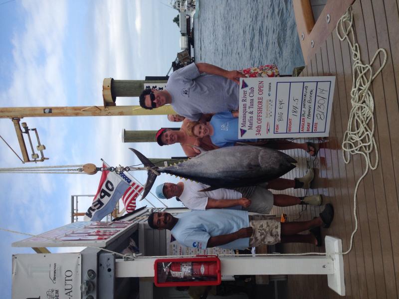 Club tournament but boat issues curtailed those Plans. In steps Adam from the Canyon Runner to Invite me for a crew trip, timing could not have been Better! Left the inlet with Capt Phil at the helm with Me in the pit with Adam and 2 of his steller crew-friends Chris and Jay, buddy-photographer Mike with son Bryce, And superstar puller angler Dr Phil Infantolino, mind you This is the same angler who owns the state record Blue Marlin to his credit and has landed over 150 bigeyes! Got to the canyons and started to troll weeds which were brutal, Even though we were tournament fishing the CR team Chunked a few for the crew for the grill nailing 2 yellows to 50lbs for the grill. Resumed the trolling and got the right Bite, Dr Phil got on the rod and destroyed this fish, had color Within 15 minutes and I planted the steel in him, fish is Currently in 3rd place at 185lbs, few minutes later, landed Another eyeball at 150. During the night Jaybones made Short work of a eyeball on the jig of 120lbs, and I chunked A nice yellow and decked him in minutes. In the morning Trolling was slow and the CR team decided 6-6 on quality and fish to weigh In it was time to go home. Want to thank The CR team for a great Time and truly had a great time spending time with Jay, and Chris who Is the best on water chef I have experienced, and chatting with Dr Phil!