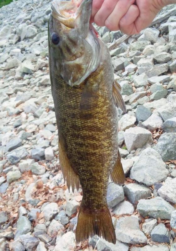 Fishing was slow but I managed to get into 3 decent bass. One was this not-too-shabby SMB. Picture doesn't do it justice because I had to angle down to get him in frame. Gave me a run for my money on the 4-lb test trout rod I had in the car. Saw a guy catch a nice rainbow on a spinner. Other than that, pretty slow day. Hey, if you ever want to pick up a shorebird for some company, lemme know. I'm always jealous of you boat guys. |