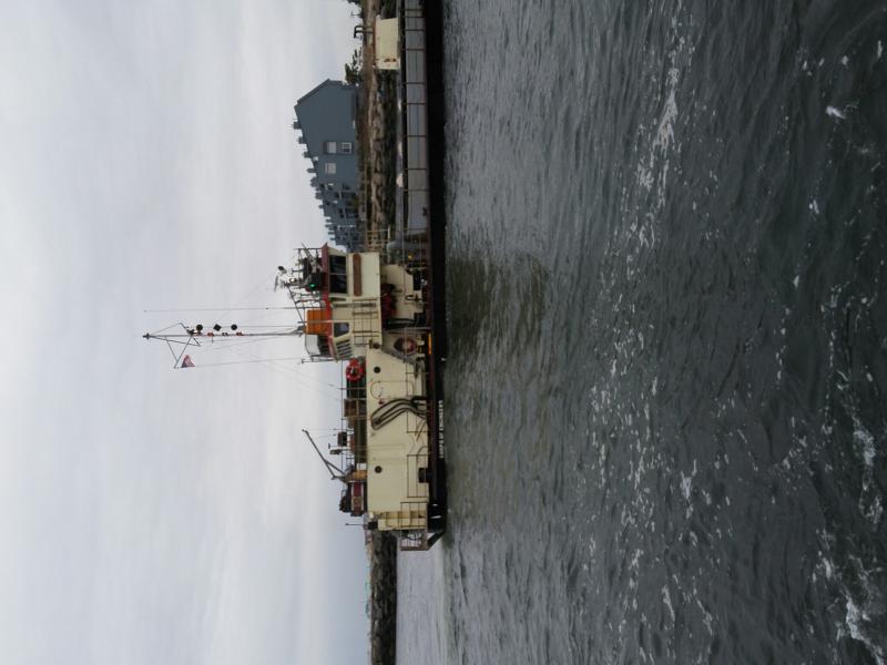 When I returned the next day, > 100 fishermen were lined up on both sides of the inlet from the end of the jetty to the dog beach. Fishermen surrounded my spot but I managed to land 6 bluefish from 9.75 lbs to 38.5" and 17 lbs. I tagged a 17 lber and 10 lber. The dredge Currituck was in my spot for awhile when I arrived. A big blues broke rods and bit fishermen. 7" yellow Bomber Long A17 and poppers worked well for me. I may try 1 more day there.