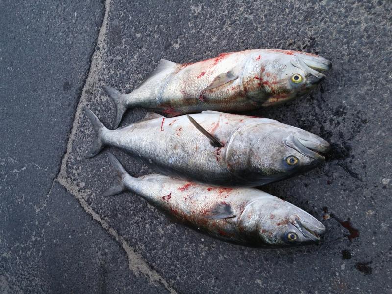 Yesterday evening I made 22 casts into Manasquan Inlet with Hopkin's metals and landed 10 bluefish. Smallest was 9 lbs. Kept 6 and tagged and released 4. Had big blues on my line for my first 17 consecutive casts. They stole both of my Hopkin's rigs. It was an outstanding trip for a 69 year old jetty fisherman.