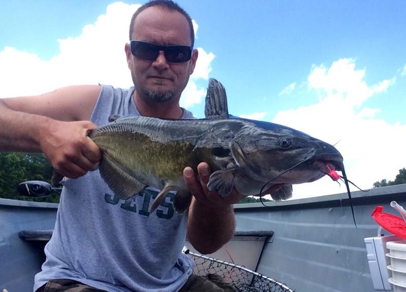 Saturday on the big "D" and lower "M!" Found some schoolie Stripers while jigging for Walleye. All dinks, nothing picture worthy! Hit the musky on the way out. Plenty of Trout around to play with. Water still feels pretty cool out west. Managed to whack a nice Brown amongst all the goofy Rainbows. Sunday on the "D!" Too much traffic but the Channel cats didn't seem to mind. I must've had at least 5000 kayakers and canoe people pass me on the river. It was amazing! Floatillas ruled the water Sunday for sure! They're feeding pretty heavy right now despite the phenomenal amount of Shad that are around. Shad are dying off slowly but surely!!! It's about time! Monday stayed local and visited some of my pets! They were very happy to see me and receive some free mouth piercings for the holiday weekend! Good weekend on the rivers, streams and 'criks!!! TIGHT LINEZ!!! HAPPY 4th of JULY!!!🇺🇸🇺🇸🇺🇸🇺🇸🇺🇸