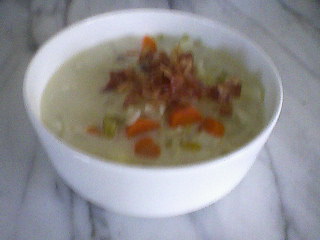 Serve with Bacon on top and chopped parsely. Salt Pepper. ENJOY!!