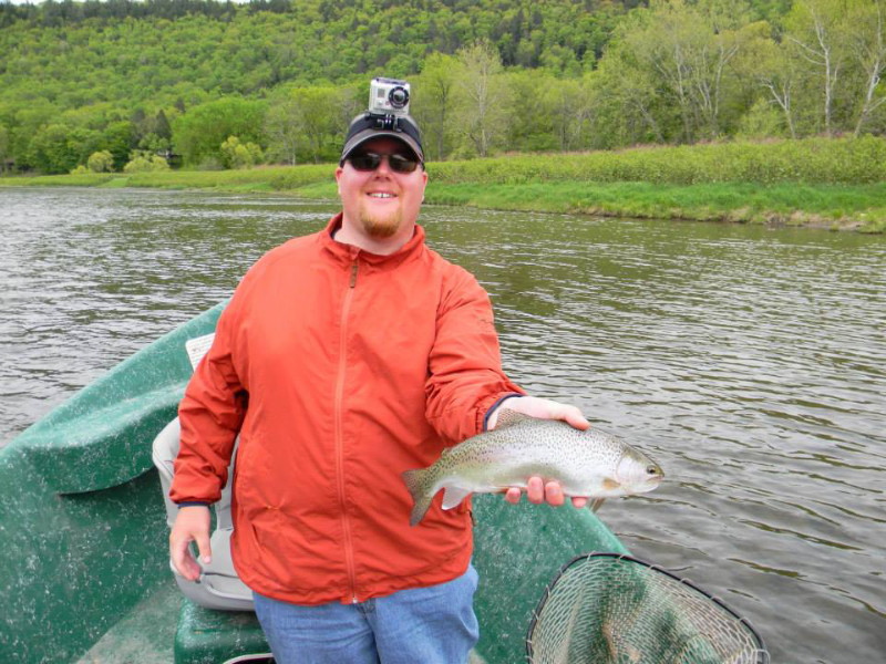 Took a guided float trip from Long Eddy to Calicoon with my dad yesterday. We fished from 7:00 to about 4:30. Between the two of us we caught two walleye about 17", one shad about 20", a few browns to 16", several rainbows to 18", and numerous smallmouths to 14", with most being in the 8-10" range. Water was at summer levels already and super clear. With the overcast skies the trout weren't quite as spooky as they could have been. Gold spinners were the hot lure, it did not mater what make; Blue Fox, PMs, Mepps, and Thomas all seemed to work equally well. Most of the fish were in swift water. In fact, we caught most of the smallies from water where you would normally find rainbows.