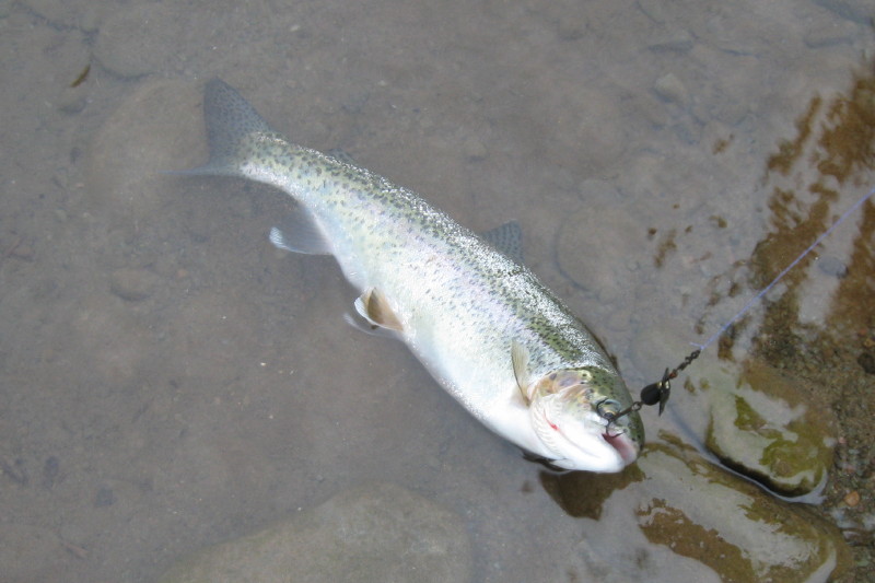 The rainbows were vicious! Most of them were real jumpers, and we lost several on the jumps when they shook the spinner out. Aside from all the rainbows we missed, I also missed a couple of nice browns and a good smallie in the 2.5 to 3 pound range. Shad were everywhere in packs of 1-2 dozen, but getting them to bite was not in the cards.