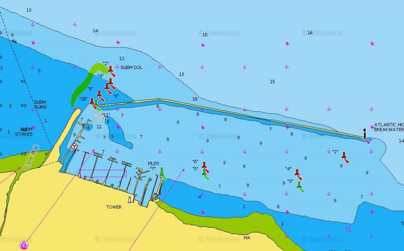 IMHO they should be marked better since at high tide they are just under water. They did make some improvements in marking them a few years ago and now have red channel markers along the south side leading you clear of the pilings. Problem is if you are approaching from the north or west there are no markers. Should be some white obstruction buoys there on the north/west side outlining the perimeter. Like where the yellow highlight is on this chart.