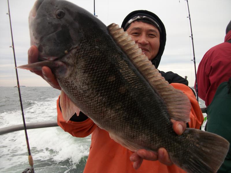 We had a decent day of fishing today, the ocean was fairly calm with only a little ground swell . The morning started with a steady pick of togs coming over the rail, even the short togs were close to 15 inches, the white leggers gave us most of the action today. We moved around , some drops we more