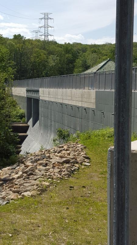 The construction on the dam appears completely finished with almost all of the equipment gone, no workers present and nothing looking unfinished. The section of Split Rock road over the dam is still closed. Most likely they are still finishing the inspections, etc. The water is still down but I was able to take several accurate measurements on the dam and water level. When the reservoir fills back up, the normal full pool water level will be the same as the old full level. Currently, the water is down just over 4 feet from normal full. In one picture you can clearly see the splliway in the center of the dam which represents where water will flow out at normal full pool. Since there is a minimum required flow that must feed the outlet stream I could not tell if they are still maintaining a lowered level or have begun to let the reservoir refill as it will take some time. There are now metered traffic lights, similar to the infamous 5 minute light, for the roadway over the dam. In the pics, you can also see the new official use only boat ramp next to the dam. I also was told by what I consider a reputable source that the state is not going forward with expanding the public access and boat launch due to finding American indian artifacts in the area. I took all photos except for the aerial pic which is from the engineers website. |