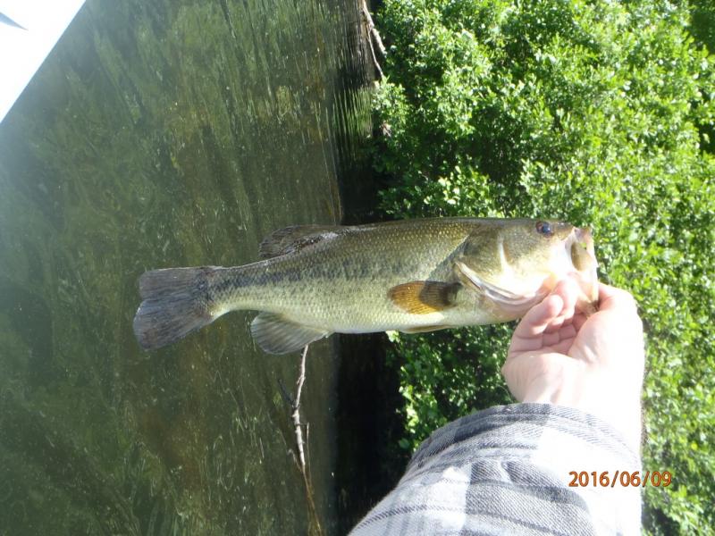 4 day weekend for me and I started it off by finishing work on the trailer to get it back to being usable. Dropped in Monksville to see if the boat still floats. Wind was fun today. Trolled with the wind and against it, but no cooperation so I made my way to the sunken forest. Tied up to a tree to hold my spot in that wind but no hits and nothing swimming by so I moved again. Worked the weeds across from the ramp and nailed a nice largemouth. Had a pickerel take a swipe but miss and another pickerel follow but not hit. Wound up with two sunnies and another largemouth. All fish were hunkered down in the weeds, nothing was holding on the banks or moving along the banks like they have been. Crankbait in the open pockets got them. Now I'm in Camden County ready to head east in the morning with Pops for some fluke on day 2 of the 4 day weekend