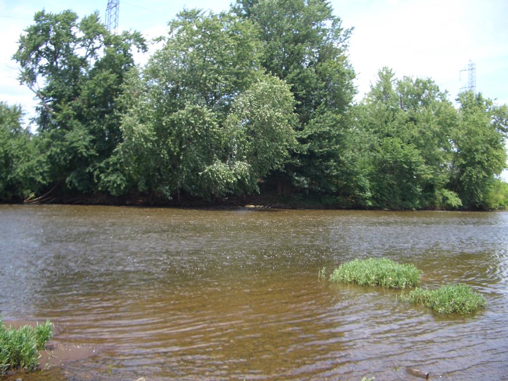 Back onto the Bound Brook flats just minutes from my house. Waded up from the Queens Bridge a good distance before I started throwing. The veracious bluegills were tearing apart my 2 1/2" Keitechs, stopped working the edges and started working the middle. The mid day sun was brutal. Hooked a heavy fish out in the middle, big head shakes and it was gone, felt nice. Worked my way down to the bridge and started throwing into the shade, nailed 3 or 4 dink smallmouth in short order along with some huge bluegills. Fished the fast water below the bridge and got 3 or so more dinks, good to see small fish in river as well.