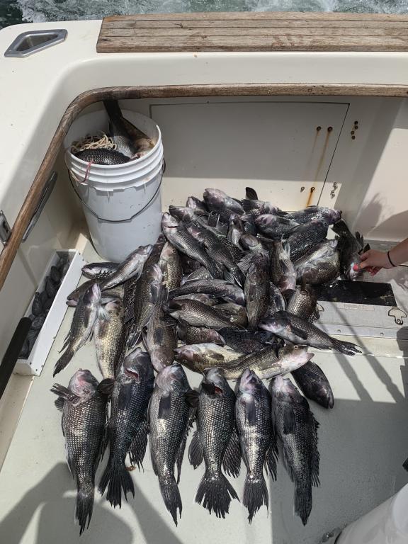 Had a great group out today and fishing was good once again. Seemed like some bigger fish today as well. Only had a lone ling and a bunch of blackfish that went back and a sundial. Ended with the boat limit. Still have some openings for Sunday and Monday for seabass.