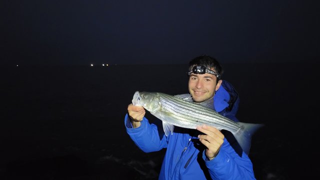 3pm hit and I hopped in the truck. Got to the water by 5:20, I live pretty far so all things considered this was pretty good time. Started fishing and immediately whacked a Shad. A few minutes later, Thmyorke1 showed up for his first ever foray into the surf. After only being there for a few minutes, I hooked in to something big. At first i thought I had snagged something, but then the drag started ripping. My heart was pounding, was this a ray? was this a striper? As the line filled up my spool again and we caught a sight of the beast, I knew we had to land it. I was able to reach down and grab it, with my lure just barely hooked into the corner of its mouth. There was much rejoicing ![]() ![]() Luke was also able to get his first ever fish from the surf! An extremely successful day ![]() ![]() ![]() |