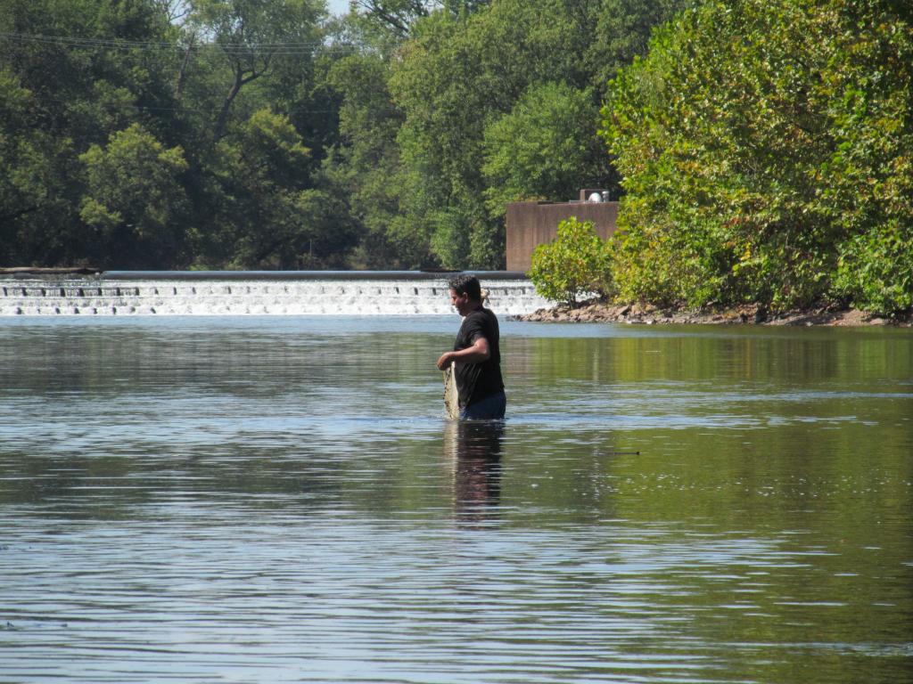 Pulled tires as we went. Saw huge schools of quillback and lots of common carp unfortunately. Saw schools of channel catfish and even SMB. Weeds and algae starting to break loose from the bottom, a bit of a PIA. Fish ladder was a busy area, many fishing from the banks as well as people wading and throwing cast nets. Probably could have caught SMB all the way to Donaldson Park in Highland Park if we wanted to float that far. Did many floats in the past few months and had lots of fun, I think it's starting to wind down now. While others in the State are complaining about how low the streams are, we are floating a canoe down the main stem because we always have water since the river is a major supplier of drinking water.