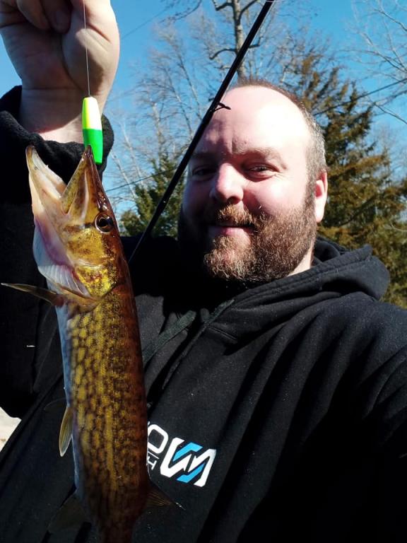 2/20-Well after loading up on minnows from Sharkys in northeast philly for my tour of coal mining country tomorrow aka deep south jersey, Devon refused to let me not let her cast some. Tried college cockolla water ice cold, skim ice still on smaller pond but 1 cast 1 perch for me & nothing else for us. Spring be here soon I hope. Also Sharky's new gulp minnows are so life like