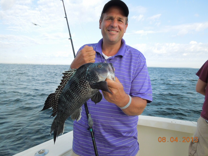 Today we had the Mike lewis charter on board for a day of Seabass fishing. Along with Mike were his 2 sons Ryan and Michael along with friends Chris, Ed & Frank. Paul ran up to the Seabass grounds and got into a nice steady pick of Seabass. The crew had to fish thru plenty of shorts but were able to put together a nice catch of quality Seabass. At days end we had 80 Seabass on ice along with 2 Fluke. You could not ask for a nicer day weatherwise and as usual it was fun to fish with Mike's crew.