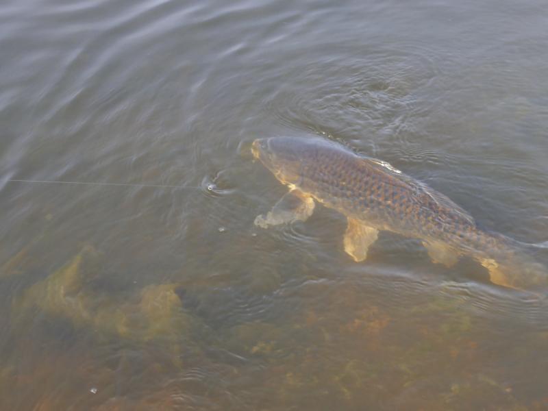 After that didn't have much of anything for a bit & then BAAAAAAMMM! my heavy rod goes off & 20lb test is flying off i am getting spooled!beast finally slowed down & the fight was on took over 20 minutes to land the beast but i got em! def the biggest carp i have caught since high school, pics do not do him justice, i had to use 2 hands to lift him! i am guessing 15-20lbs. fish hit corn. after that i caught a crappie & a chunky largemouth. Water was colder today than last weekend.not sure if i should stick to this spot or not bottoms so weedy it hass to be tough for the carp to see the bait but thenagain carp root in the weeds for food so maybe i am overthinking thi? I dunno ![]()
